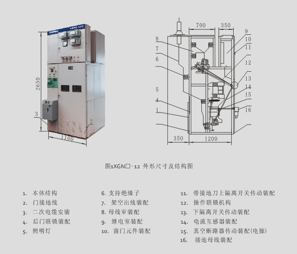 XGN2-12開關(guān)柜為金屬封閉箱式結(jié)構(gòu),柜體骨架由角鋼焊接而成,柜內(nèi)分為斷路器室、母線室、電纜室、繼電器室等,室與室之間用鋼板隔開。